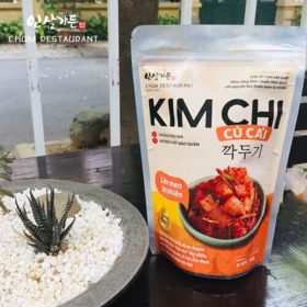 Nếu như dòng sản phẩm kim chi cải thảo nổi bật với vị chua cay thơm mùi cải thảo và táo lê thì kim chi củ cải này lại mang hương vị khác: ăn giòn sồn sột, cắn một miếng ngấm vị chua thơm nồng của củ cải, vị cay thấm đượm, ăn kèm cơm nóng thì không biết bao nhiêu cơm cho đủ.